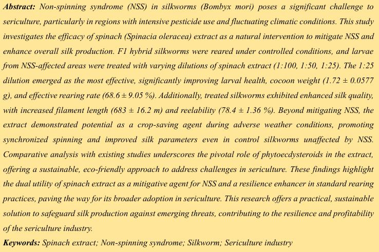 Affiliation: Sericulture Research Laboratory, Post Graduate Department of Zoology, Hooghly Mohsin College, Chinsurah, Hooghly -712101, West Bengal, India