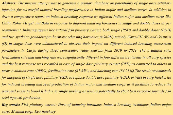 Affiliation: Fishery Unit, Uttar Banga Krishi Viswavidyalaya, Pundibari-736165, Cooch Behar, West Bengal, India